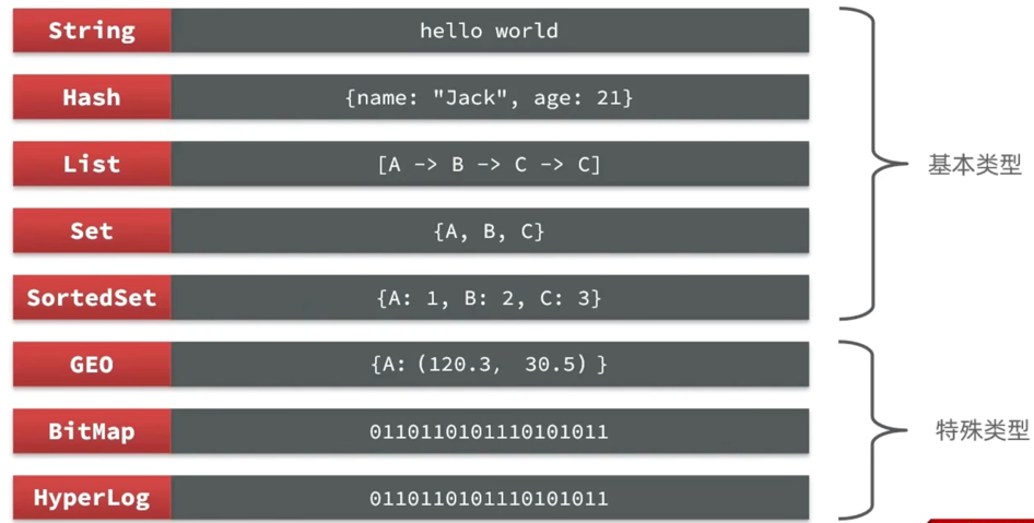 Redis 是key-value的数据库,key一般是String类型,value可以是多种数据类型。